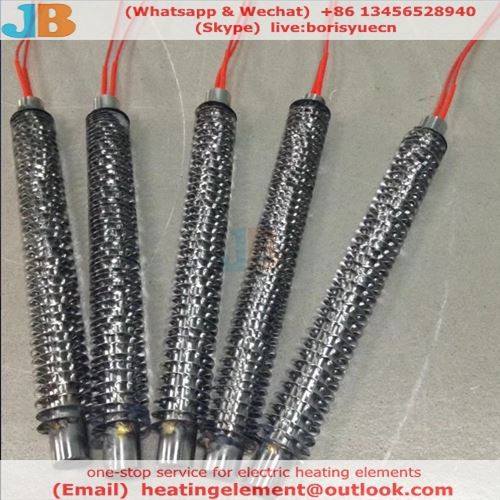 Finned Tubularni grijači se obično koriste u prisilnom cirkulacijskom grijanju niskog temperaturnog zraka, drugih atmosfera i plinova. Pogodan za upotrebu u širokom izboru prisilnih aplikacija za grijanje zraka, industrijskih pećnica i aplikacija za uslugu hrane. Čelični fini grijači su standardni sa temperaturama površine ograničenim na oko 425ºC (797ºF) u odnosu na 815ºC (1500ºF) za slini oblo ognjeni ne-finirani grijač.